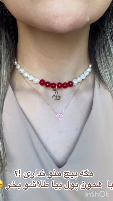 گردنبند مروارید با پلاک طلای دستساز